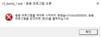 우선 Dump를 떠준 프로그램을 실행시켜 보면 다음과 같이 오류가 출력된다.