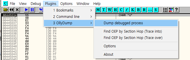 OEP를 찾았다면 이제 필요한 것은 Dump파일을 떠주면 되는데, ollydump라는 플러그인을 이용해서 Dump를 떠줄 수 있다.