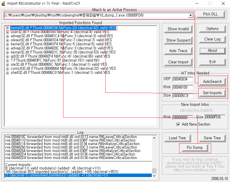 그리고 이 방법 이외에도 꼬인 IAT를 풀어주는 것도 있는데, 이 때 사용할 툴의 이름은 Import REConstructor이다.