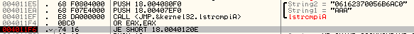예상대로 값을 비교할 때 쓰는 문자열이 들어오네요 String1에는 제가 입력한 AAA라는 입력값이 들어가고 String2에는 비교할 값이 들어가는데 그럼 String2에 있는 값이 Serial값이 되겠네요.